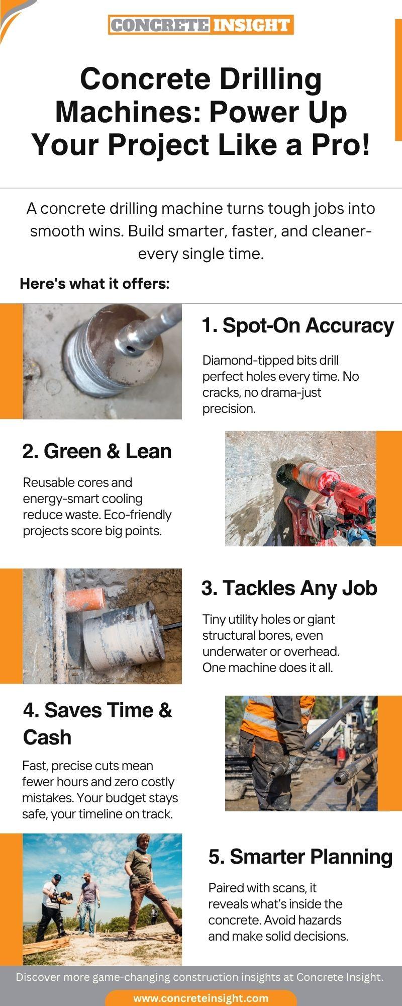 Okay, we’ve covered the why-now let’s hit the highlights of what a concrete drilling machine brings to the table. These aren’t just nice perks; they’re game-changers that make your project shine. Here’s the quick scoop: